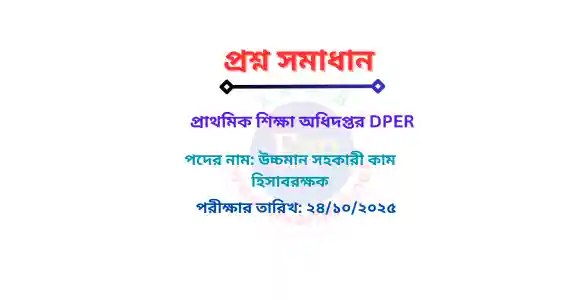 প্রাথমিক শিক্ষা অধিদপ্তর (dper) | উচ্চমান সহকারী কাম হিসাবরক্ষক | লিখিত প্রশ্ন সমাধান PDF | 24/10/2025