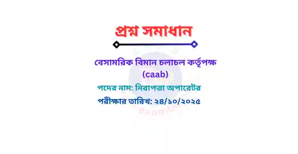 বেসামরিক বিমান চলাচল কর্তৃপক্ষ (caab) | নিরাপত্তা অপারেটর | প্রশ্ন সমাধান PDF | 24/10/2025