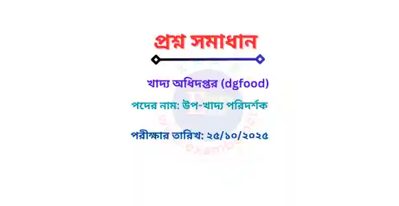 খাদ্য অধিদপ্তর (dgfood) | উপ-খাদ্য পরিদর্শক | প্রশ্ন সমাধান PDF | 25/10/2025