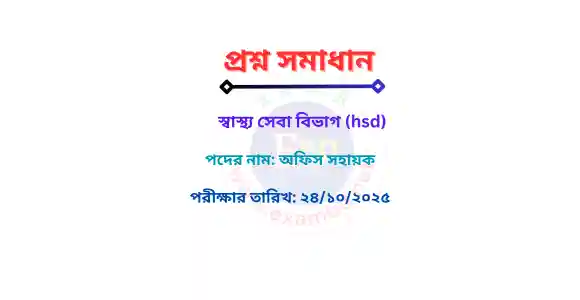 স্বাস্থ্য সেবা বিভাগ (hsd) | অফিস সহায়ক | লিখিত প্রশ্ন সমাধান PDF | 24/10/2025